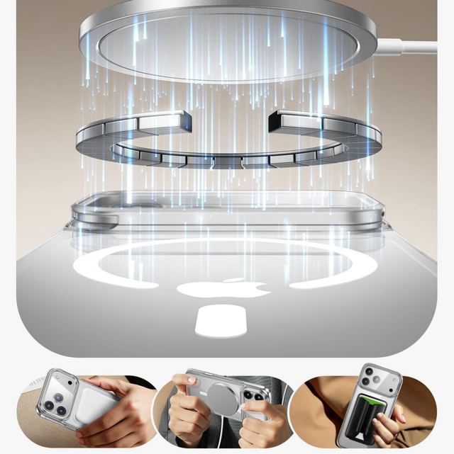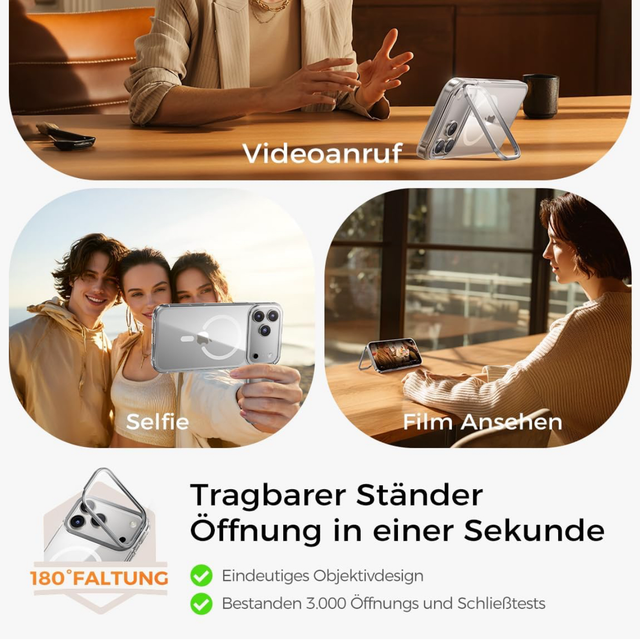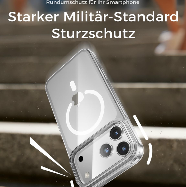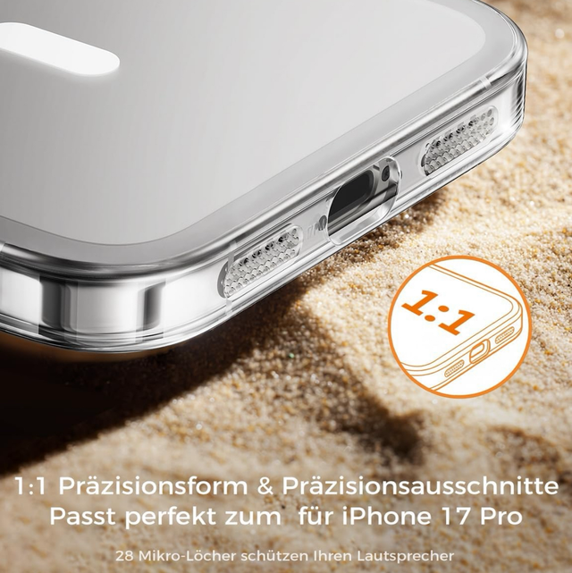 Magnetische Hülle für iPhone 17 / Air / Pro / Pro Max mit vollständigem Linsenschutz aus klarem PC schützt die Kamera vor Staub und Flecken – ein Wisch stellt die Klarheit wieder her. Der Linsenhalter mit 0-180° verstellbarem Scharnier hält 3000 Öffnungs-/Schließvorgänge stand. Der integrierte Kamera-Auslöseknopf passt perfekt zum Kameraloch, bietet nahtlose Steuerung und haptisches Feedback. Ein starker N52-Magnet ermöglicht Kompatibilität mit kabellosen Ladegeräten, Geldbörsen, Powerbanks und Autohalterungen. Die Hülle vergilbt nicht, bleibt hochtransparent und bewahrt das originale Aussehen des Phones. Ein feines Gitter am Lautsprecher schützt vor Staub für langanhaltende Klangqualität und bietet angenehmen Griff.